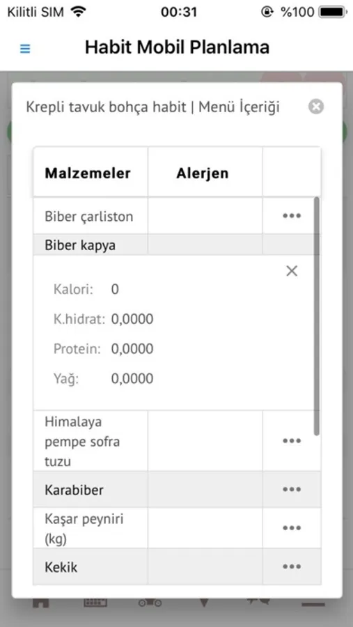 Habit Sağlıklı Yiyecekler A.Ş. Mobil Planlama Uygulamasıdır.