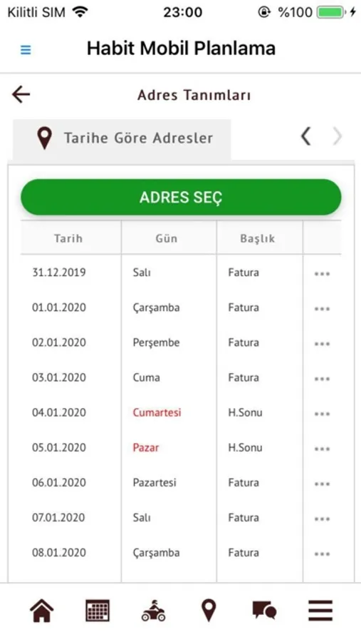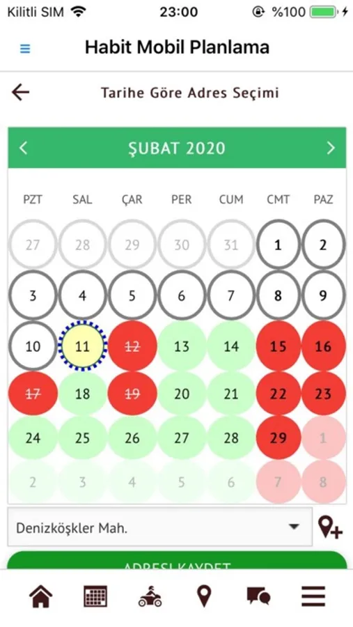 - Tanımlı adresler arasında yok ise servis yapılan ilçelerden birini seçerek tanımlayabilir