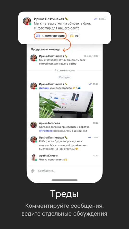 Используйте все возможности Пачки для рабочего общения: сквозные треды, новостные каналы, открытые и закрытые чаты.