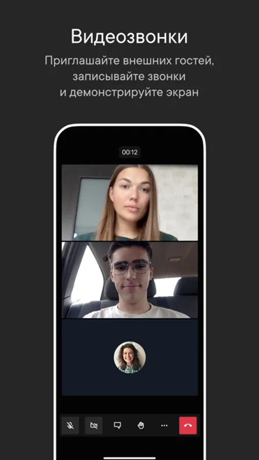 Проводите аудио и видеозвонки до 100 участников. Приглашайте внешних гостей, записывайте звонки и демонстрируйте экран.