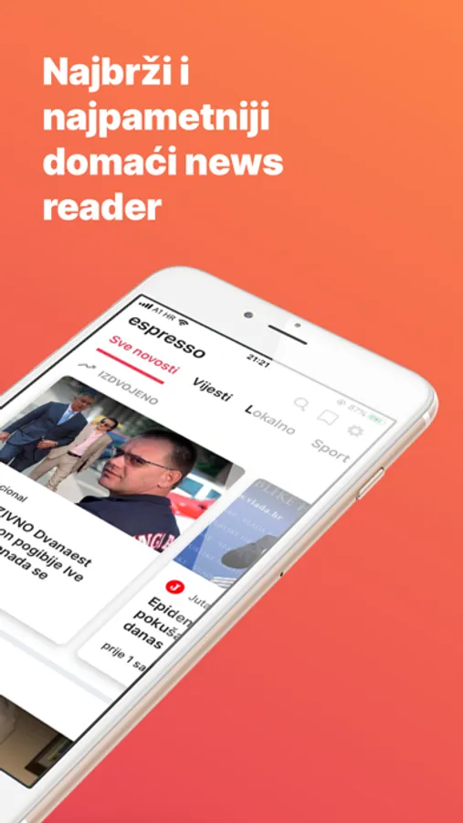 Espresso HR je najpametniji hrvatski čitač vijesti (novina), koji prenosi članke i novosti sa domaćih portala i novina (Index, 24 Sata, Jutarnji, Večernji, RTL, Dnevnik, Slobodna Dalmacija i brojni drugi). U svakom trenutku Espresso algoritam obrađuje preko 2500 vijesti i članaka, kako bi u svakom trenutku isporučio najrelevantniji sadržaj.