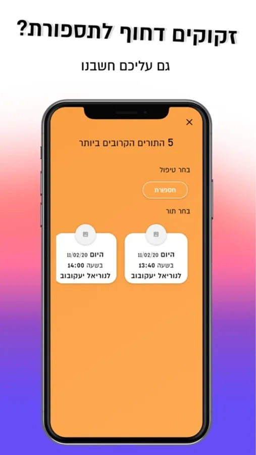 יש לבצע הרשמה קצרה כדי שנכיר אתכם ומשם כל מה שנשאר זה להזמין תור למי שבא לכם ומתי שבא לכם.