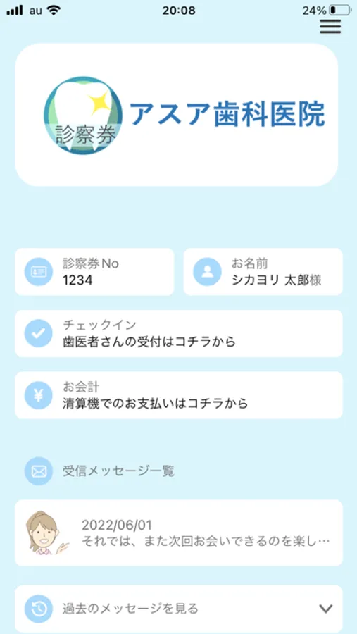 アプリのご利用、機能の詳細は各歯科医院様にお問い合わせください。