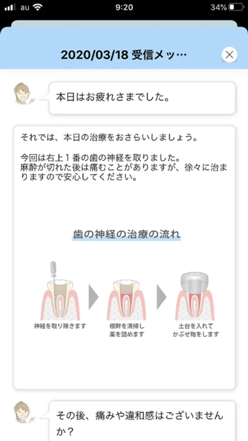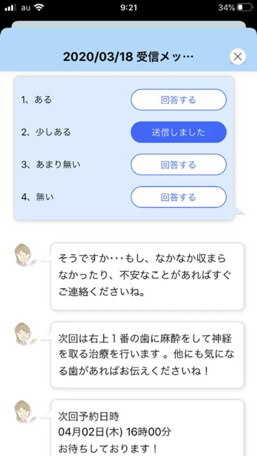 治療の補足説明や、お口の状態にぴったりのメッセージがアプリに届きます。