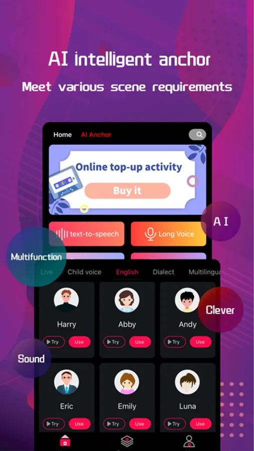 [Human Dubbing] Hundreds of national and provincial dubbing actors and hosts are invited to join the dubbing talent. To meet your various high-quality dubbing needs. In the future, German dubbing, English dubbing, French dubbing, Italian, Russian, Spanish, Vietnamese, Japanese, Korean and other world languages will also be opened.