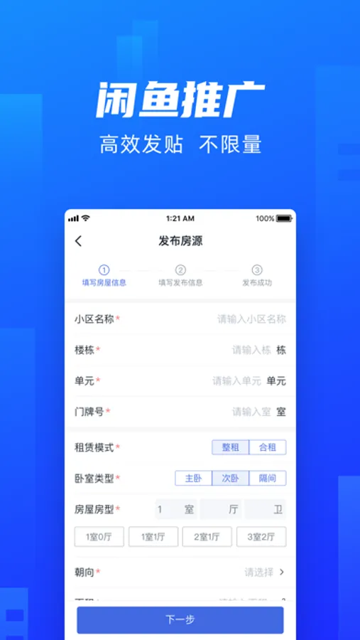操作简单:产品操作流程简单,只需3步即可在多个平台上推广房源,随时扩充发布房源数量;