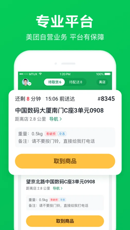 美团买菜骑士产品在使用过程中,会持续使用GPS定位服务,以便给用户派发附近订单,切换至后台使用时,仍会继续。相比其它操作会消耗更多的电量,影响电池的续航时间。