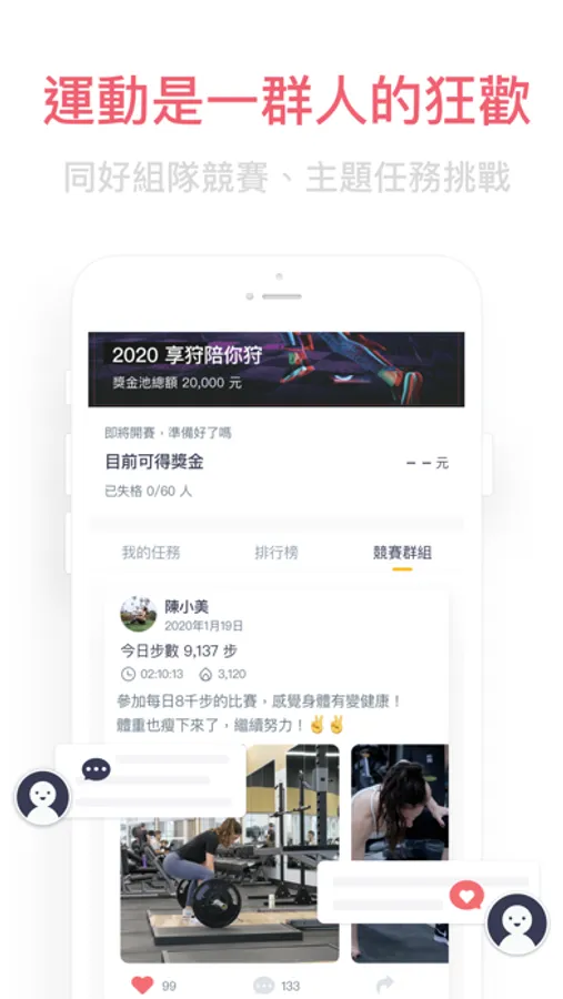 .競賽挑戰多元,計步、減重、減脂、增肌隨你挑