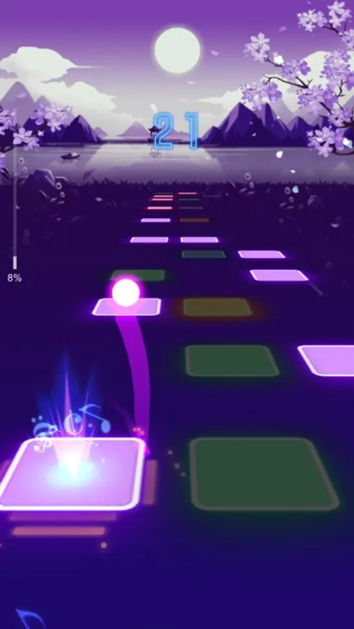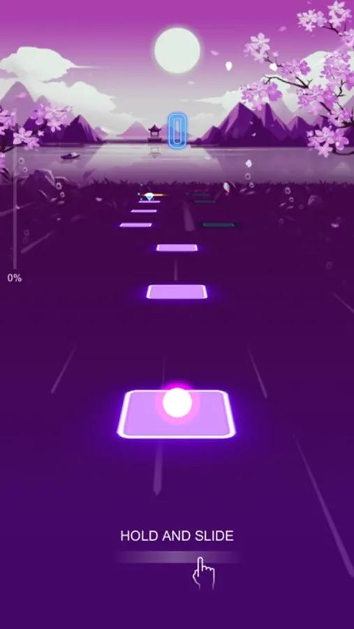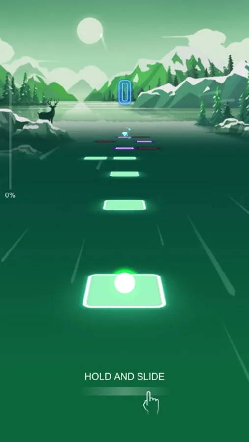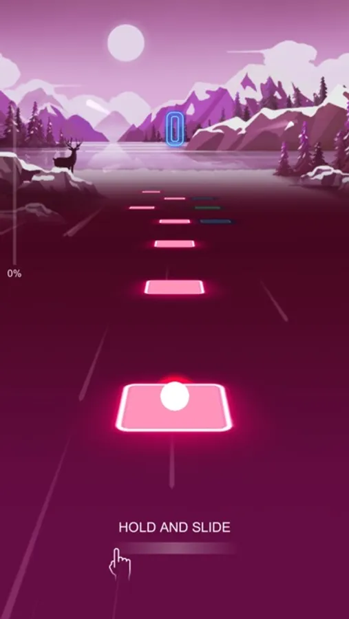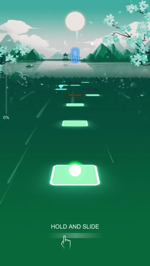 1. Hold and drag to keep the bouncing ball on the music tiles .