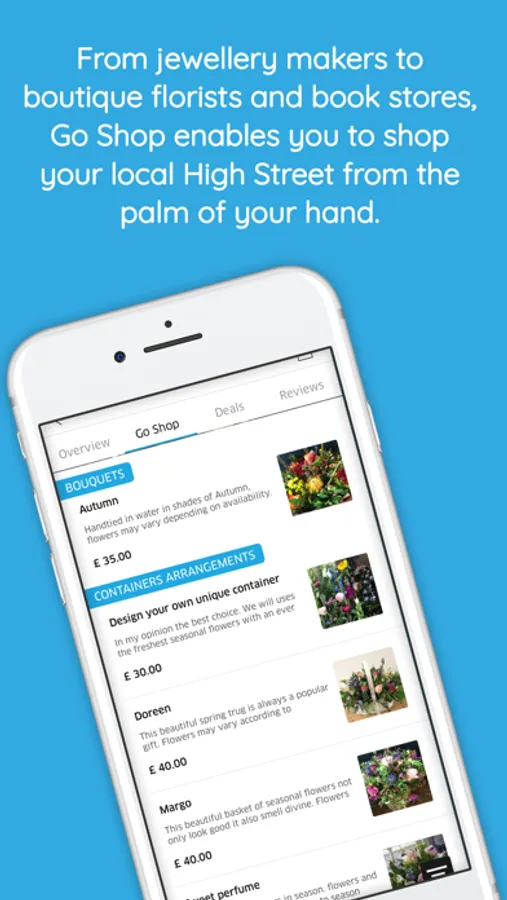From jewellery makers and engravers to boutique florists and book stores, Go Shop enables you to shop your local High Street from the palm of your hand.