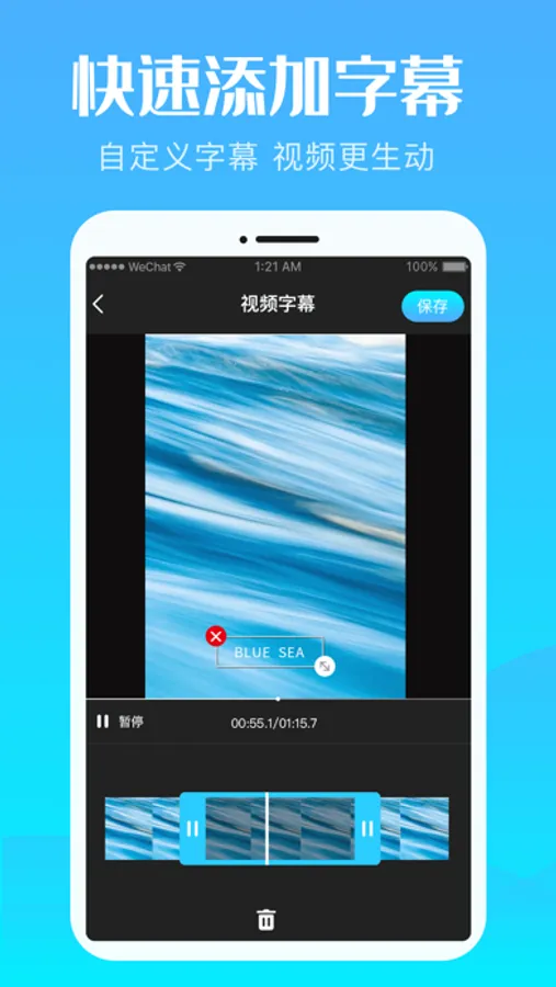 【字幕贴纸】提供多种个性化字幕、精致好看的贴纸,添加字幕位置由你定,为您的视频增添多种色彩。