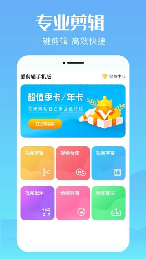 爱剪辑极速版支持视频剪辑,视频合成,字幕添加,配音,音频剪辑,音频提取等各种实用视频剪辑小功能。