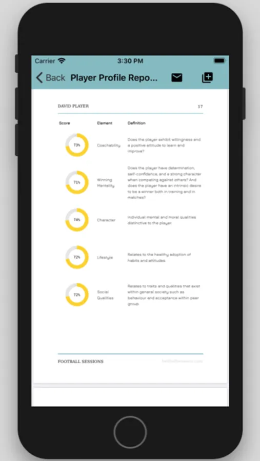 Coaches can create three types of goalkeeper report with specialised prompts to guide an accurate assessment. Completed reports are sent direct to our free Football Sessions – Player app. Additionally, reports can be sent to club technical directors to assess their goalkeeper talent.