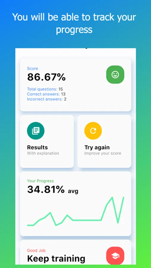 You can take different kinds of scrum certifications or examinations on the Scrumdemy app. As you take the exams, you will be able to track a summary of your progress directly on the app. You will know which areas you need to improve on to improve your Scrum Knowledge and to become a Scrum professional.