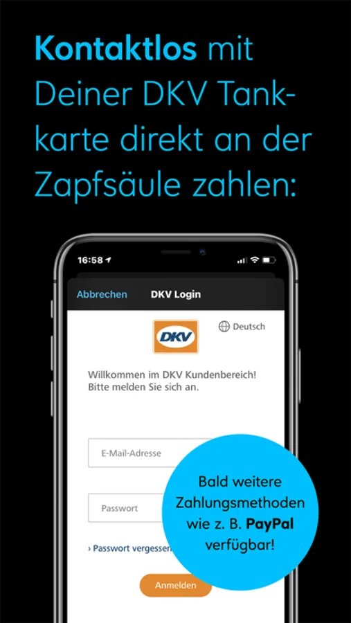 Zeitraubende Kassenschlangen gehören mit zahlz der Vergangenheit an. Zahle mit Deiner DKV Tankkarte einfach direkt an der Zapfsäule! Freue Dich in Zukunft auf weitere Zahlungsmethoden in Deiner zahlz.app wie PayPal und die Roadrunner Tankkarte.