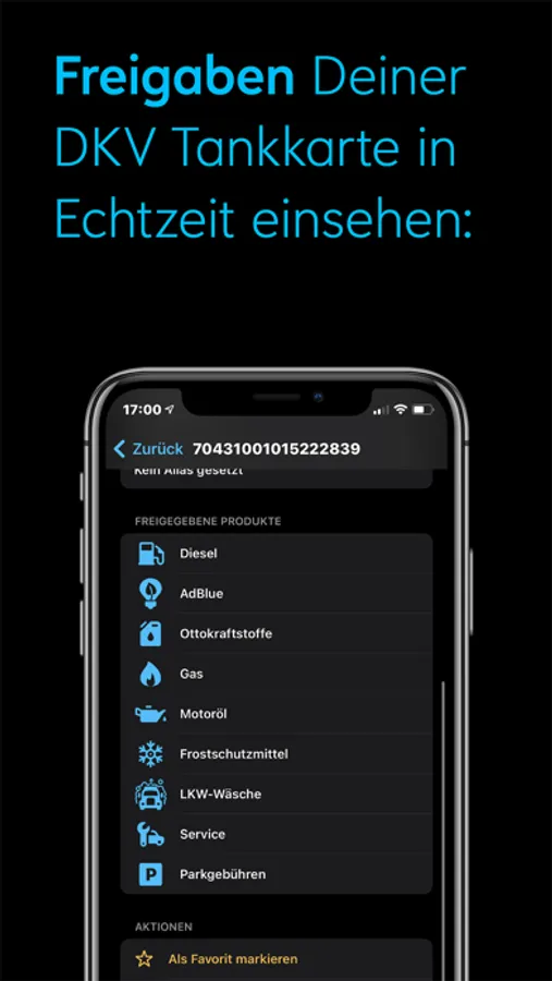 • Die Freigaben Deiner Tankkarte in Echtzeit einsehen.