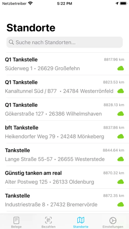 • Tankstellen nach Ortsnamen und Entfernung zu Deinem Standort finden.