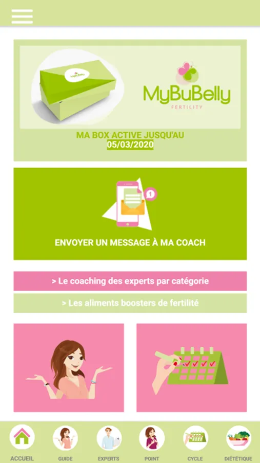 L’application est le support du suivi personnalisé, fait par une coach joignable tous les jours (par mail et au téléphone). Le Programme MyBuBelly est avant tout une méthode basée sur les échanges humains.