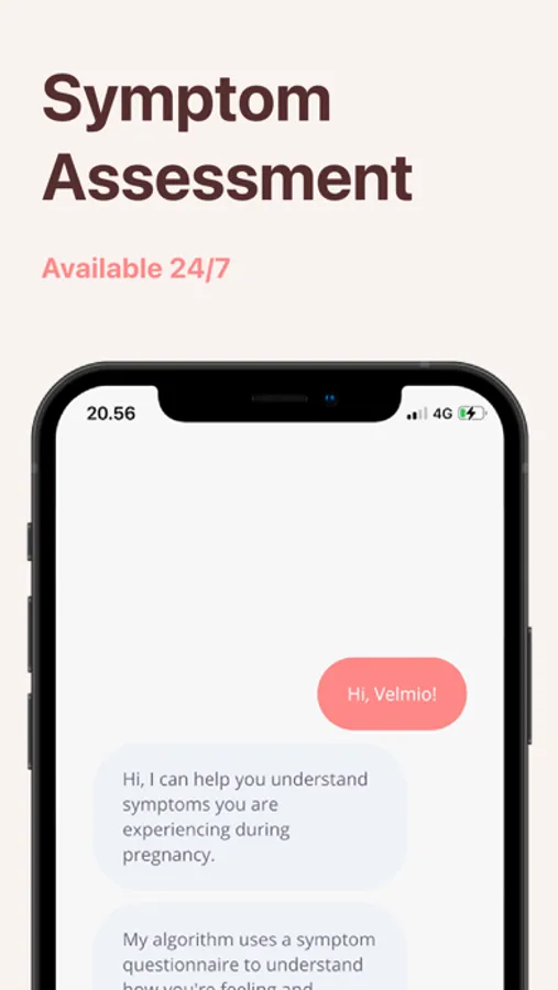 Intelligent chatbot: It’s normal to have many questions during pregnancy. Try asking our chatbot Velmio AI - her AI is powered by the data you log via the app so you can even ask Velmio to search your own data for answers.