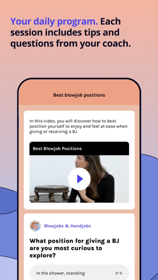 We offer easy-to-follow daily programs that help you improve your sex life with just 5-10mins a day. You will progress through a set of skills and practices that can easily be incorporated into your life.
