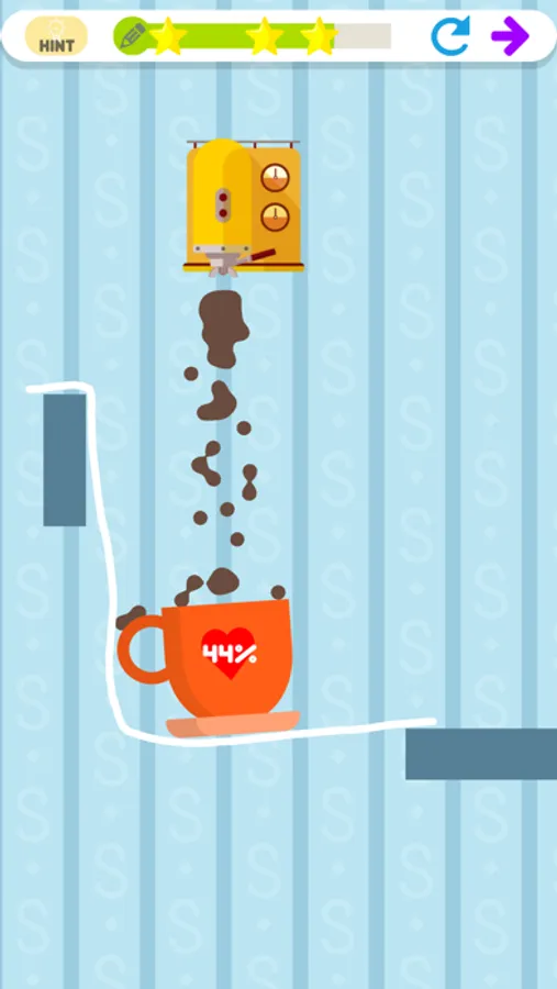 The cat is sleepy, because he needs to drink a cup of coffee to boost his performance. Your job is to draw the line correctly to fill the cup with coffee, and make the cat feel energetic again.