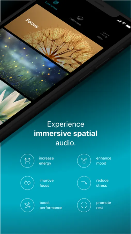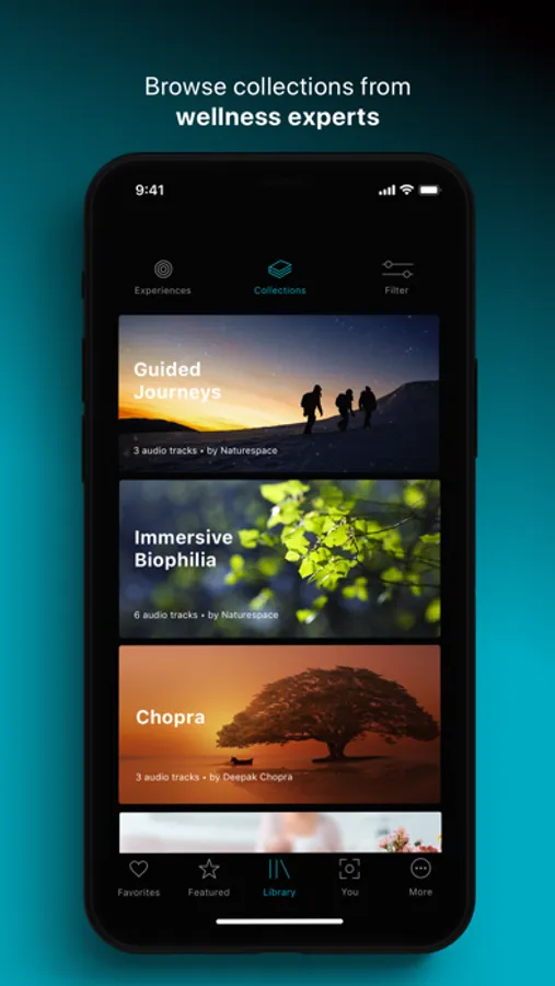 -Find a track for every intention, with a range of experience categories: Escape, Rest, Meditate, Grow, Focus, Nurture, and Energize.