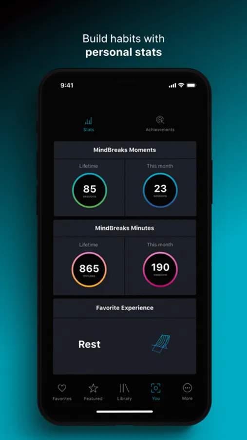 Every day is different. MindBreaks offers a range of experiences to fit your mood, including Escape, Rest, Focus and Energize. Use personal stats, streaks, and milestones to help guide you on your mindfulness journey, and flag your favorite tracks so you can easily return to them.