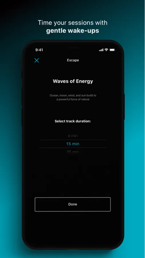 -Select between 8, 15, and 25 minute tracks, each concluding with a gentle wake-up to help you return to your day refreshed.