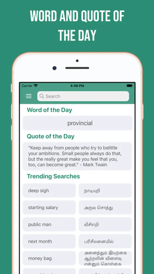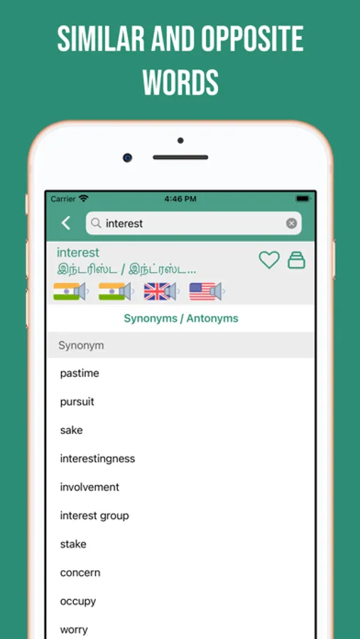 This fast, free and offline English to Tamil and Tamil to English dictionary app has one of the most comprehensive Tamil and English vocabulary. This Tamil English dictionary app also contains spoken English and Tamil pronunciations, synonyms and antonyms and word games.