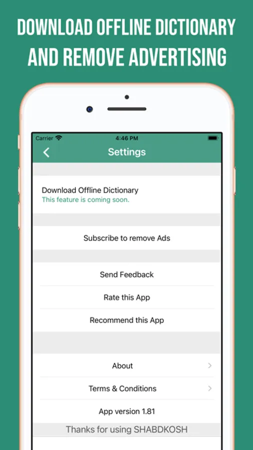 - Offline dictionary (coming soon) downloadable from the Settings screen within the app