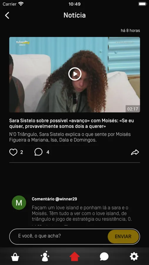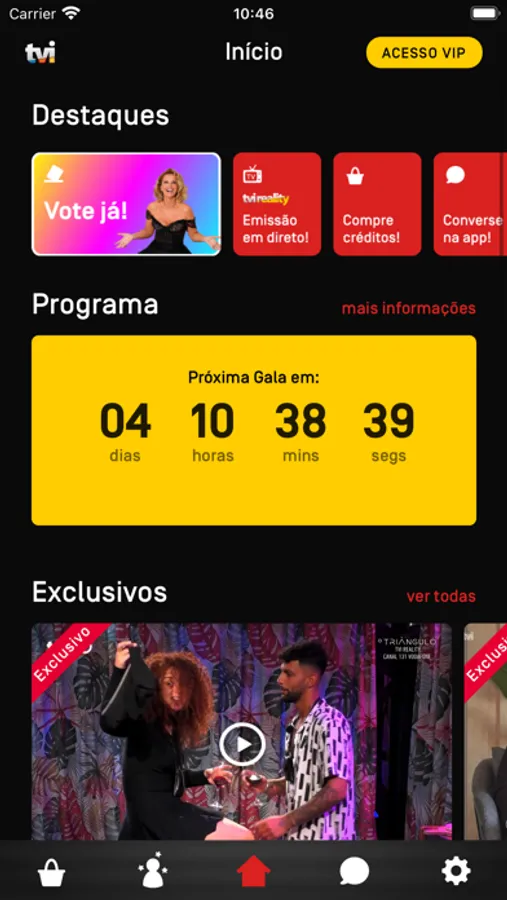 Na área principal da aplicação pode aceder a vários destaques, os quais direcionam-o para as várias secções da aplicação, nomeadamente a feed de notícias, votações, e galas em direto. Poderá também ver informação sobre todos os concorrentes e ainda falar com outros utilizadores sobre o programa através dos chats criados para esses efeitos!