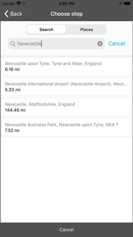 • Routes can be added manually by searching for addresses or selecting from saved places.