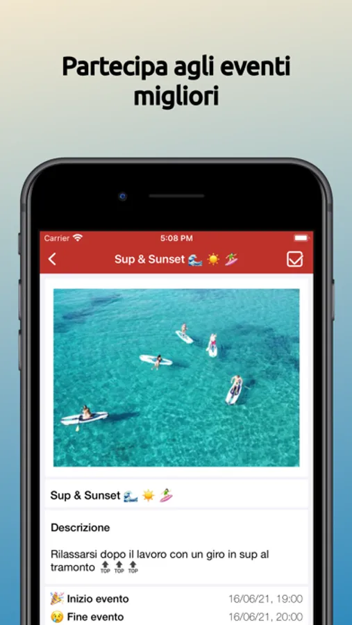 Crea eventi di ogni genere: sport, passioni, aperitivi, passeggiate, serate, viaggi