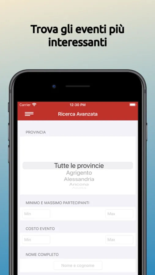 • Non trovi l’evento adatto a te? Crealo! Inserisci foto, descrizione, luogo, data e ora, quante persone vorresti conoscere e quali vorresti fossero le loro caratteristiche. Le persone, se interessate, ti chiederanno di partecipare