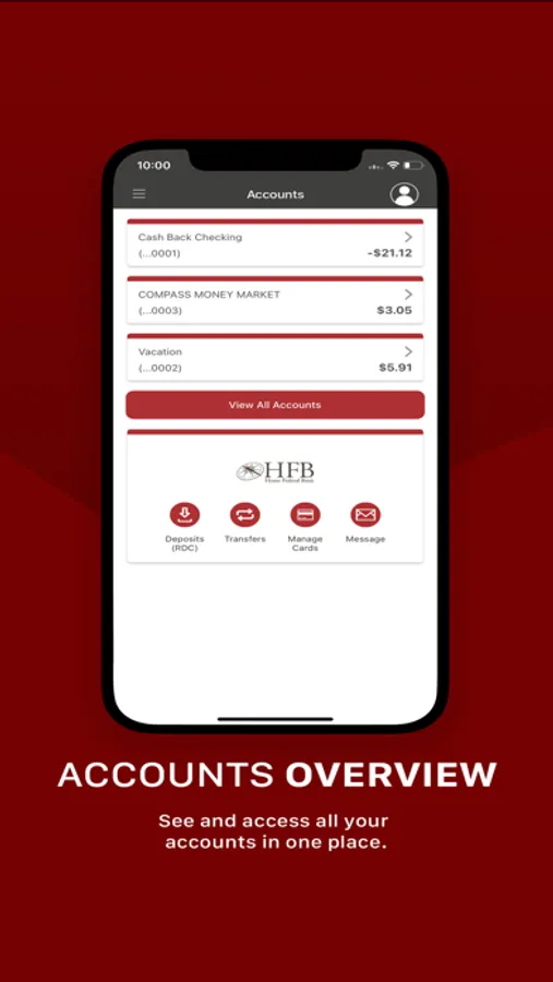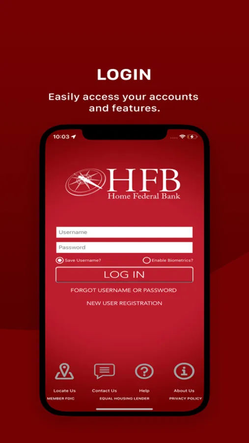 Your security is important to us. We use industry-standard practices to protect and maintain the privacy and security of your information online and in our app. View our privacy policy at https://www.hfb.bank/privacy-practices-and-security-statements.