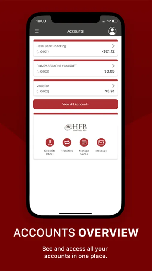 Your security is important to us. We use industry-standard practices to protect and maintain the privacy and security of your information online and in our app. View our privacy policy at https://www.hfb.bank/privacy-practices-and-security-statements.