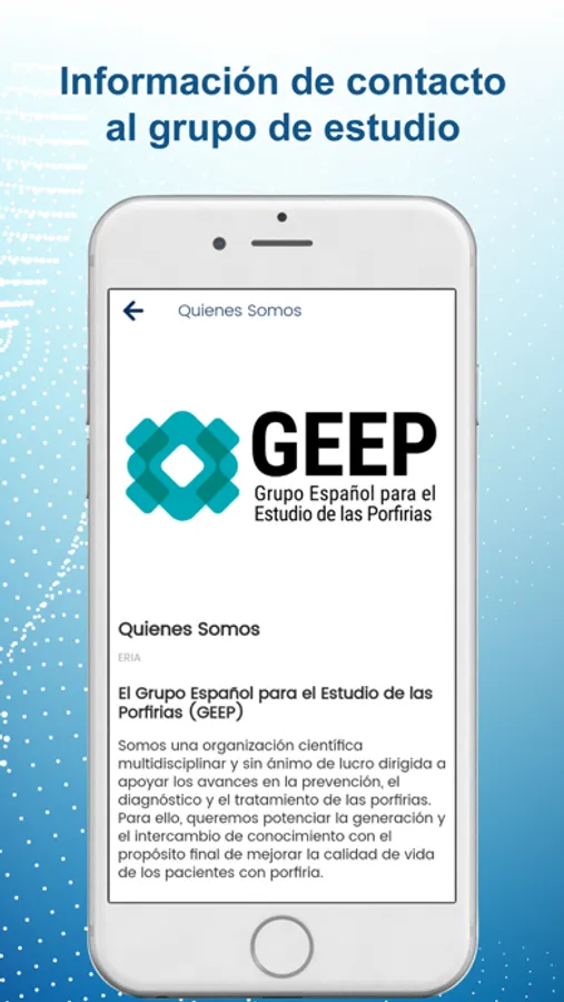 En esta aplicación, diseñada por GEEP encontrarás documentos, artículos y últimas noticias sobre la enfermedad y los avances que te ayudarán a facilitar el diagnóstico el diagnóstico y a saber cómo actuar frente a los síntomas.