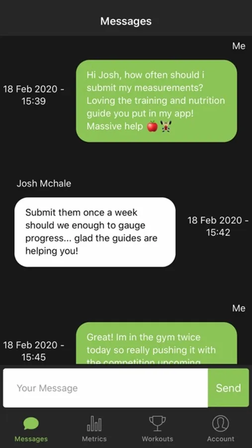 - Coach Messaging so you can message Josh directly and get notifications.