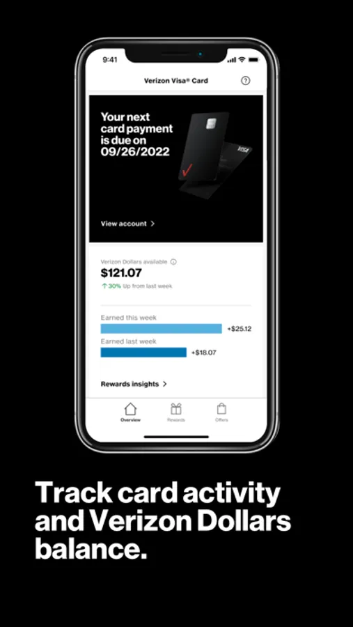 The Verizon Visa Card® app helps you manage your Verizon Visa credit card on the go. Review your balances, rewards and transactions—all from your mobile device.