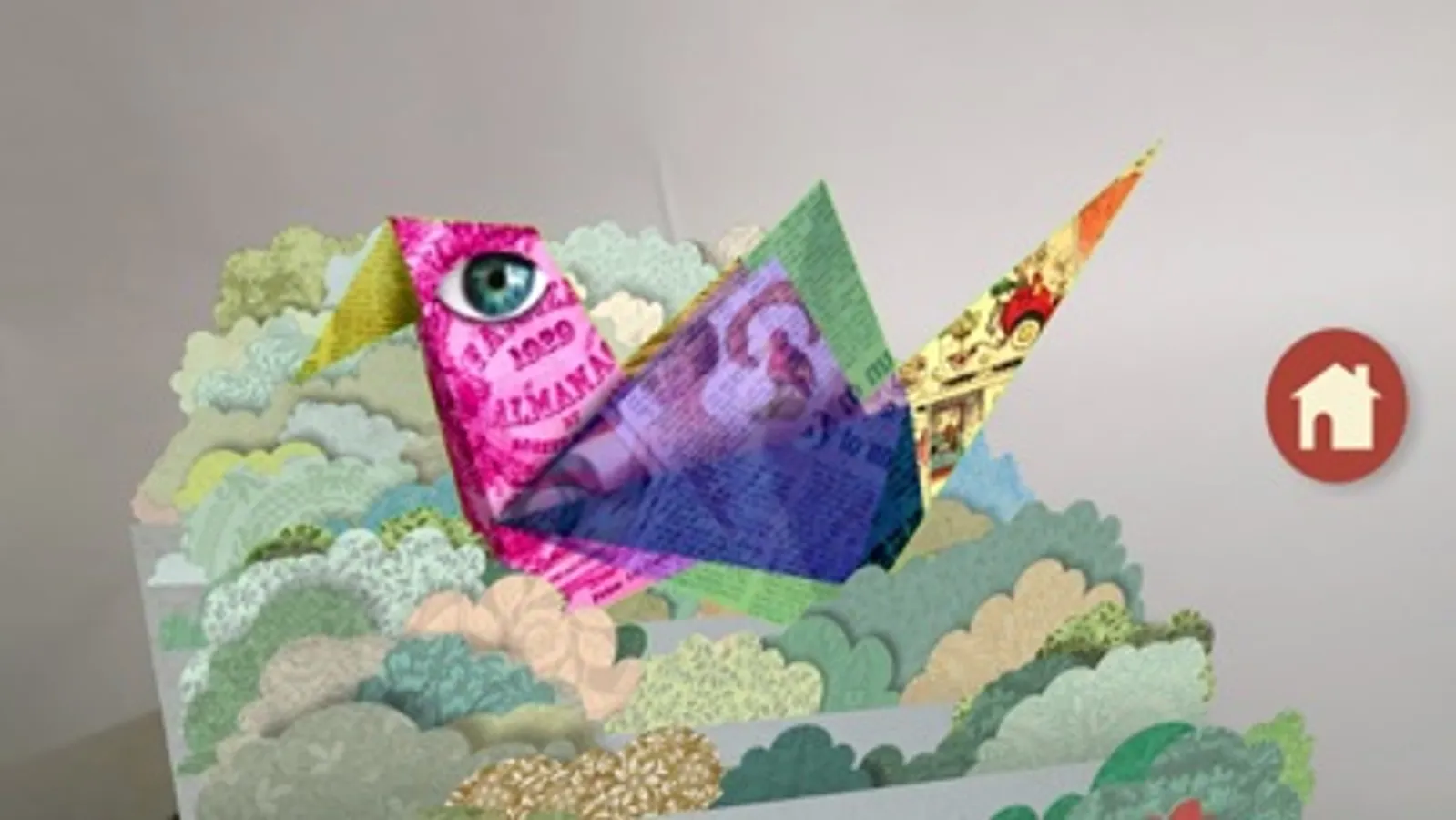 Utiliza tu celular para ver las imágenes como en un fantástico libro PopUp en 3D y escucha el canto de cada uno de los pájaros que componen esta bella historia.