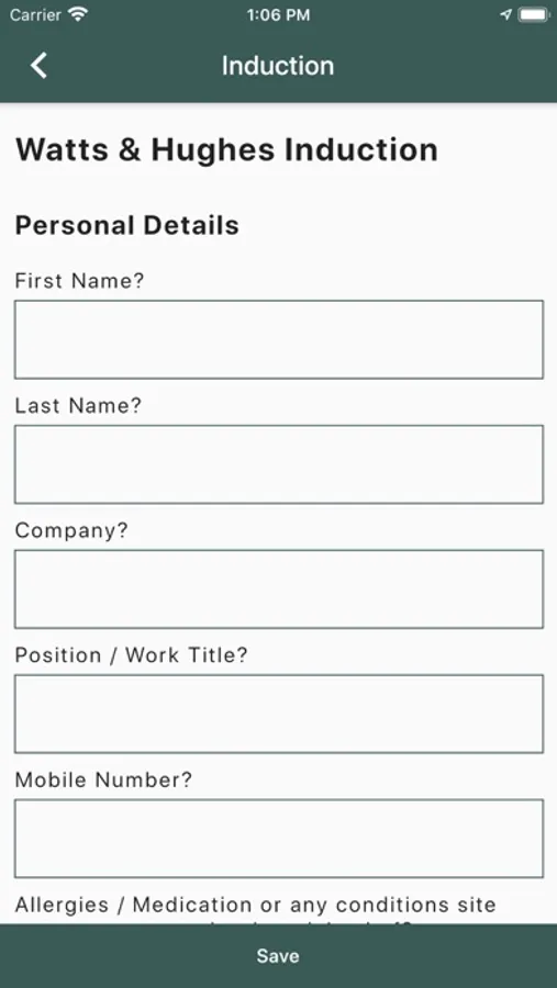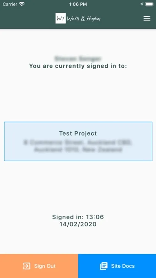Watts & Hughes, Health and Safety app for on-site contractors.