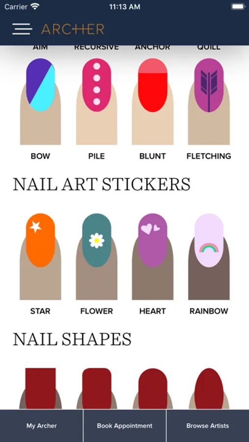 * see which Archer Nail Bar Artists are available for the service and time you're interested in