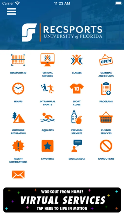 With the UF RecSports app, register for fitness classes, request custom services, join an intramural league or sport club, and plan your next adventure with Outdoor Recreation. Allow push notifications to receive breaking news like facility closures and special events. The world in motion, one Gator at a time.