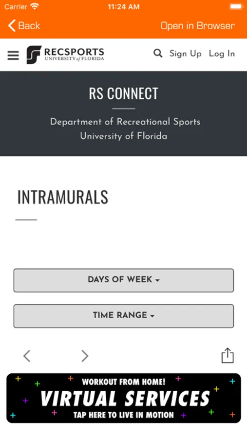 Live in Motion with the University of Florida Recreational Sports! Download our app and scan your unique barcode to access Southwest Recreation Center and Student Recreation & Fitness Center. Stay connected with hours of operation, real-time cameras and counts, upcoming event information, and more.