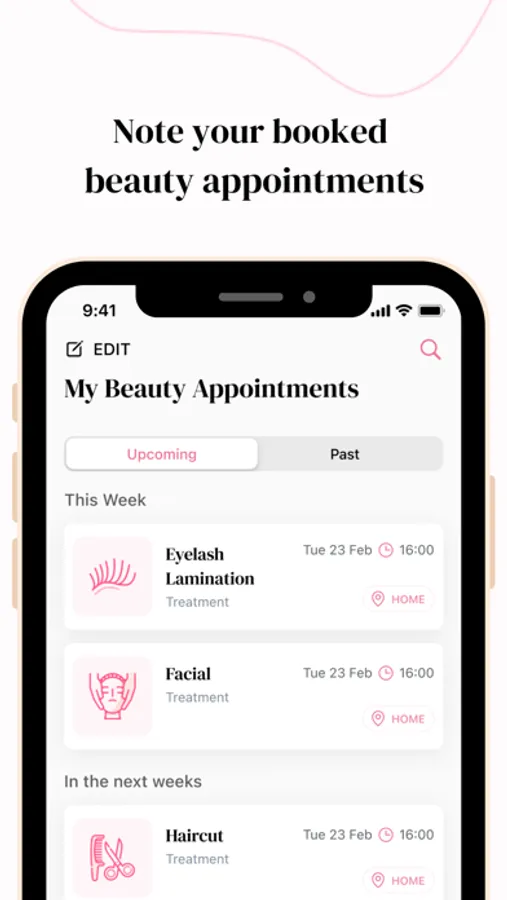 - Create and follow your beauty routine: add your regular treatments and choose the frequency you want, view last appointment dates and