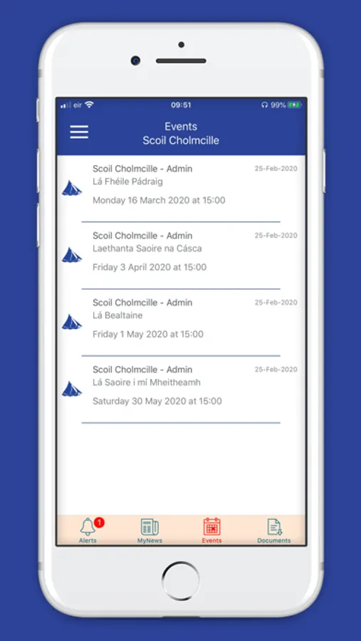 - Events Calendar, with the option to copy events to your phone's calendar.