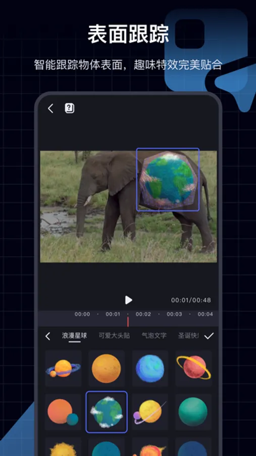 【表面跟踪】自研AI算法操作简单快捷,无需AE、PR等复杂操作即可实现贴图与物体表面完美贴合,满足您的无限创意想象