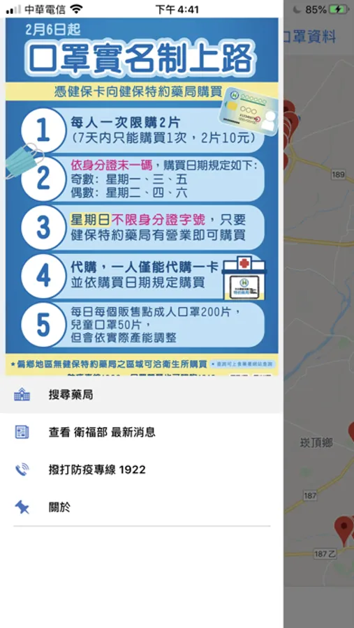 因應中華民國(台灣)衛福部 中央疾病管制局公佈實施之實名制防疫物資領取政策,便利民眾查詢各地衛生局、藥局的實名制可購買之醫用口罩、家用快篩試劑剩餘數量 App。