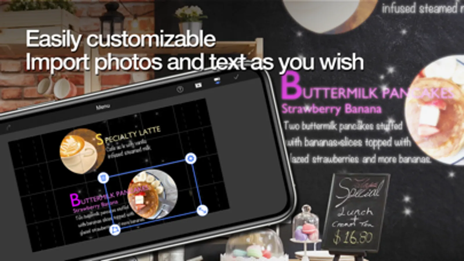 Decorate any room or space by combining your photos and movies with the app’s built-in templates and stamps.