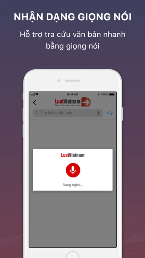 Với ứng dụng LuatVietnam, khách hàng có thể tra cứu văn bản bằng giọng nói, một tính năng mới, duy nhất chỉ có tại App LuatVietnam.